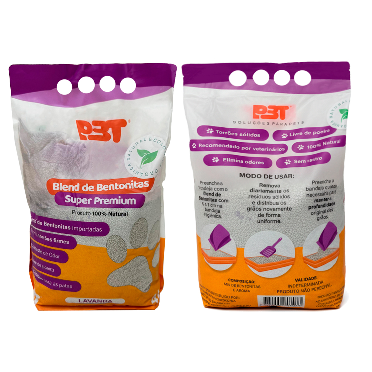 2 UN Bentonita Areia Sanitária Gatos 4kg Biodegradável P3T - Lavanda