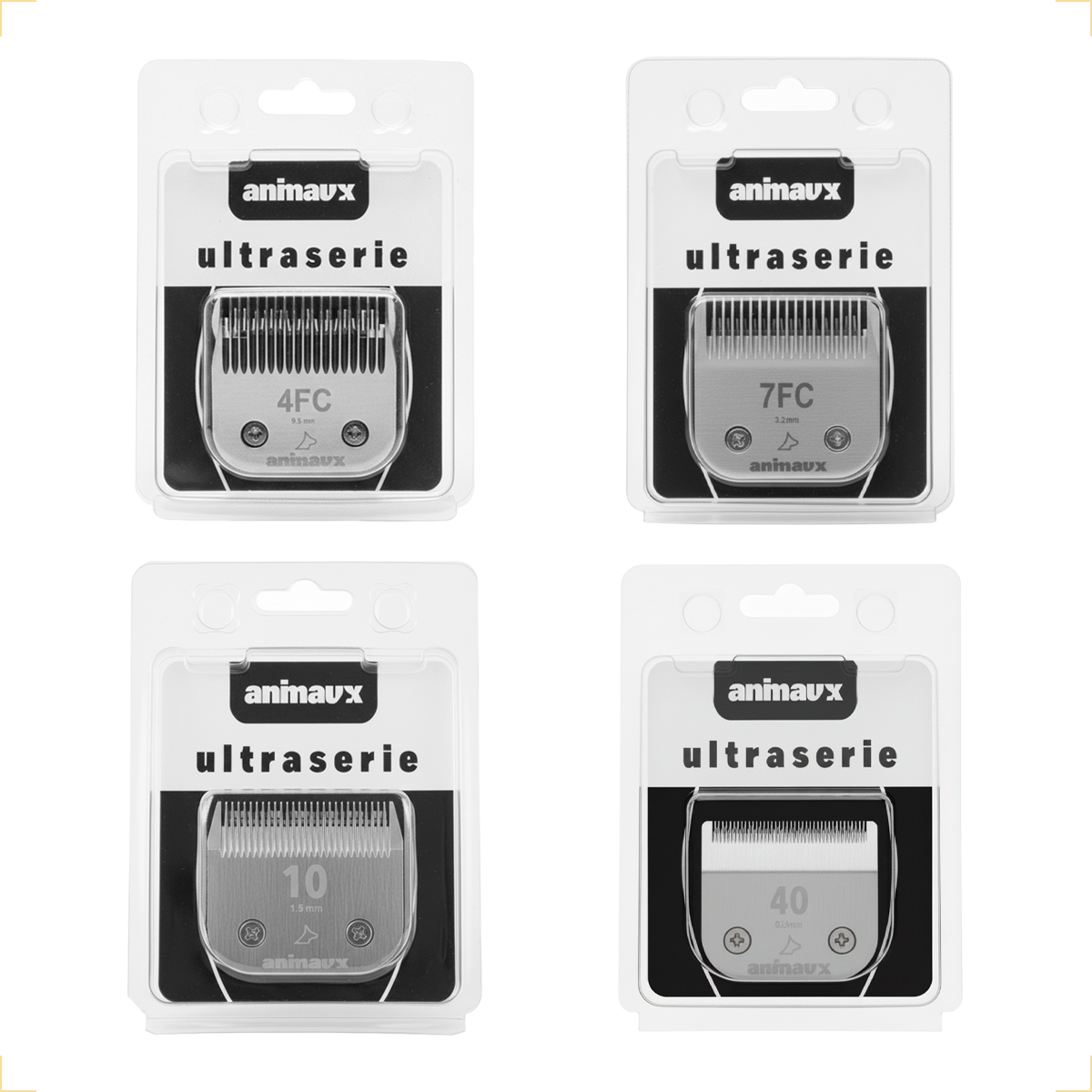 As Lâminas UltraEdge Profissionais Animaux foram desenvolvidas para oferecer cortes macios, precisos e acabamento profissional no banho e tosa. A lâmina 4FC é indicada para tosa de corpo com pelo médio, mantendo volume e efeito mais “fofinho”, ideal quando o objetivo não é deixar o pelo muito curto. A lâmina 7FC é indicada para uma tosa mais curta no corpo, mantendo acabamento bonito e uniforme, ajudando a deixar o pelo mais liso e com menos marcas. A lâmina 10 é indicada para tosa higiênica e áreas de manutenção, sendo muito utilizada em regiões íntimas e barriga. A lâmina 40 realiza corte extremamente rente, indicada para patinhas (almofadinhas), acabamentos muito rentes e preparos específicos. Fabricadas em aço inoxidável de alto carbono, as lâminas possuem alta dureza, excelente durabilidade e encaixe perfeito em máquinas de tosa tradicionais.